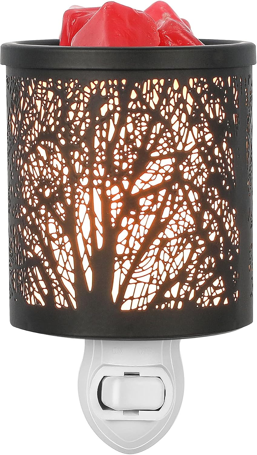 - Unique & Exquisite Design:Inrorans white plug in wax warmer is made of durable metal cover with forest pattern,reusable metal dish,15W bulb,a nice fragrance warmer for home decoration,Meanwhile,it also can be as a night light.This scentsy wax warmer is an excellent gift for your love,families and friends.