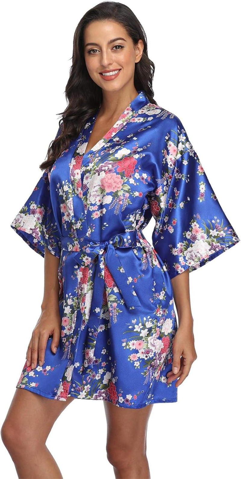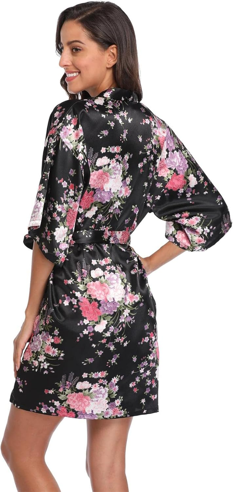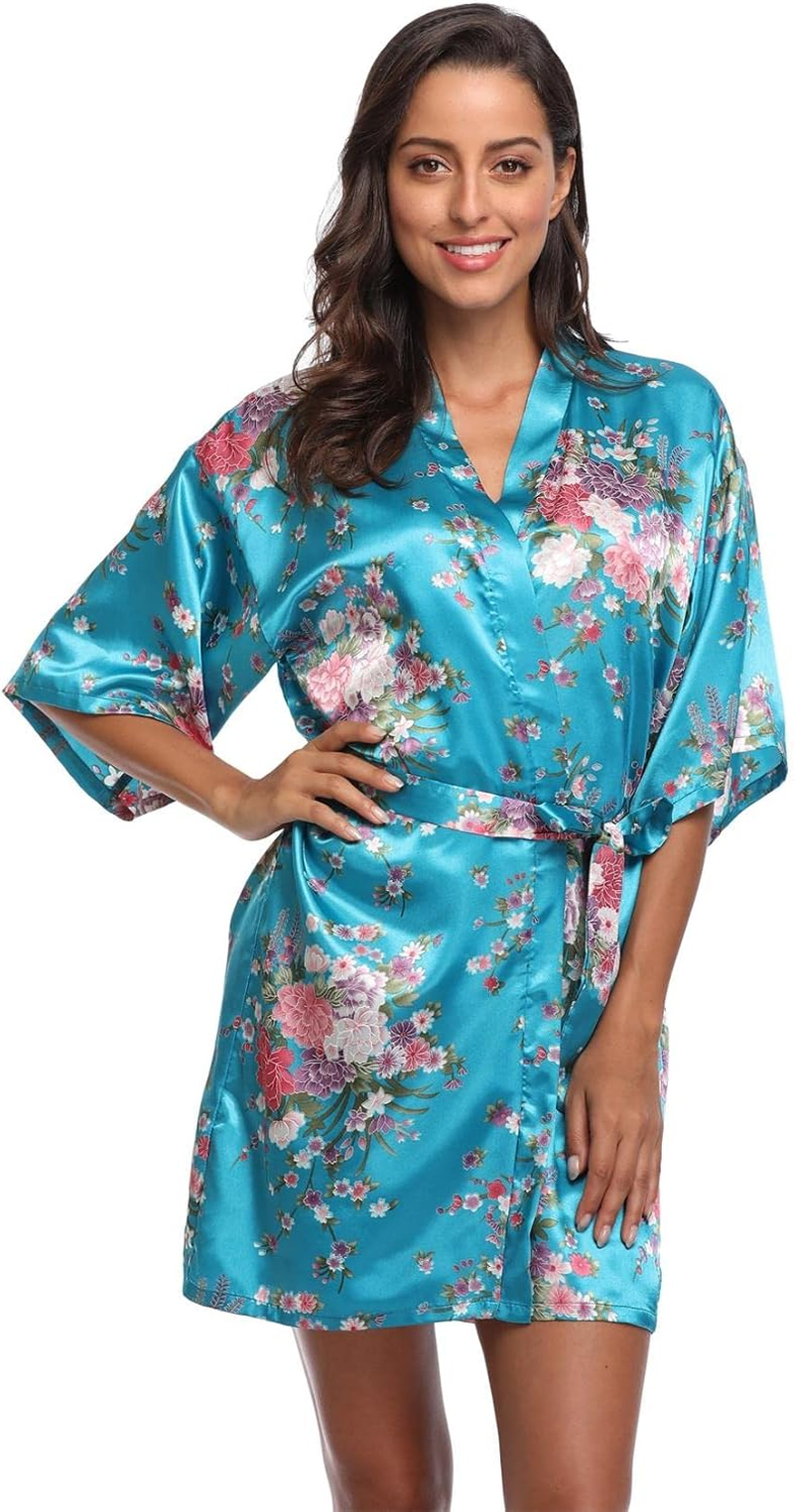 Women Floral Satin Kimono Robes Short Bridesmaid Robe for Getting Ready Wedding Dressing Gown