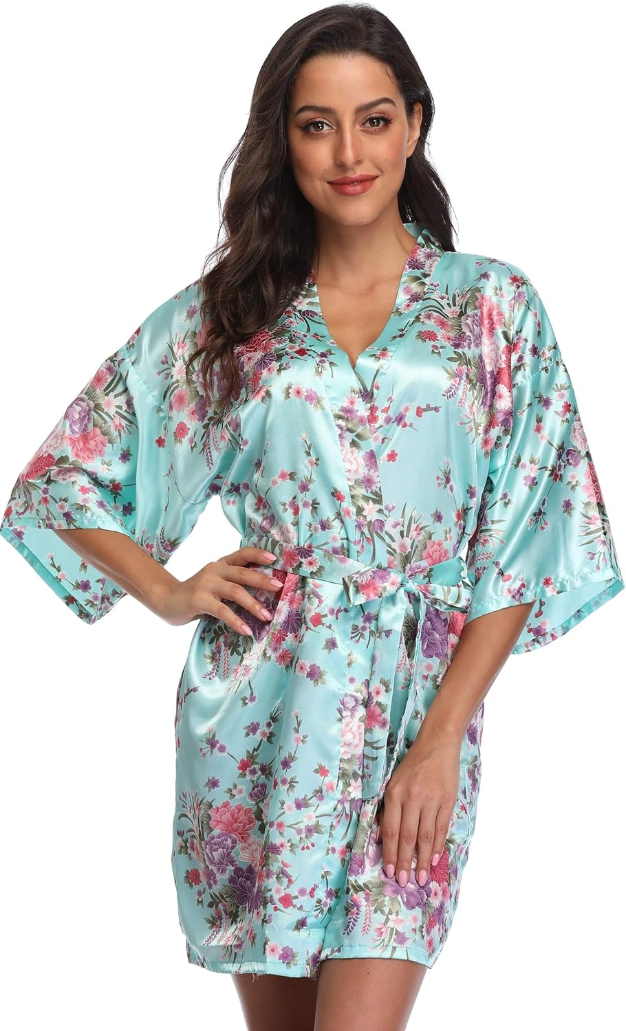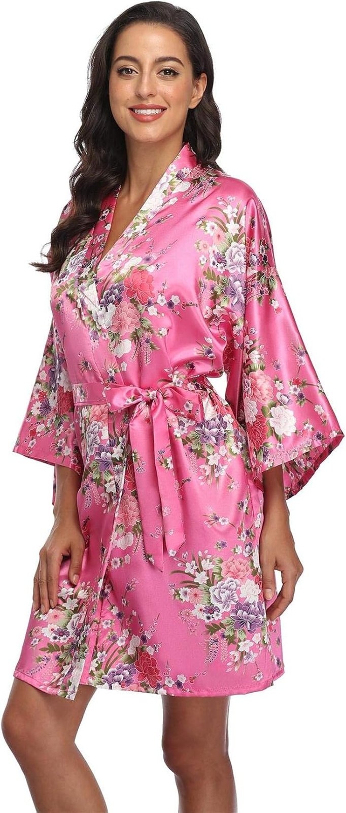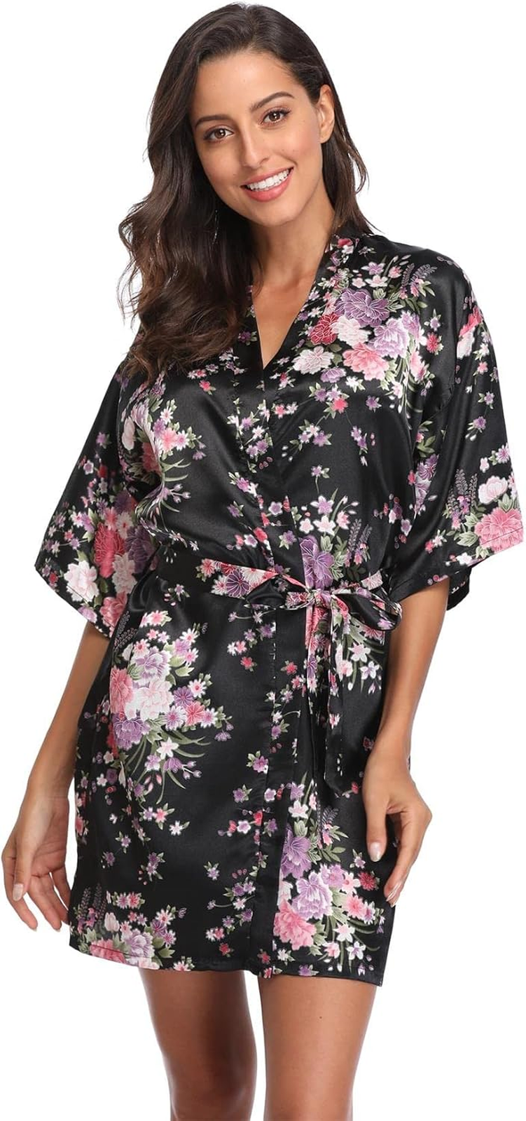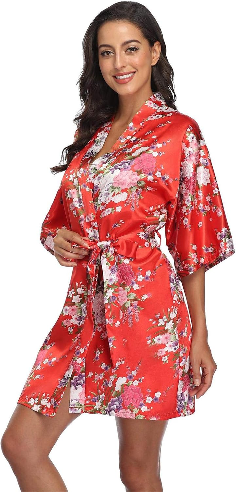 Women Floral Satin Kimono Robes Short Bridesmaid Robe for Getting Ready Wedding Dressing Gown
