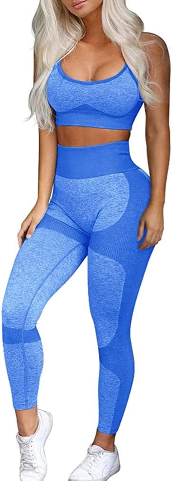 Women’S Workout Sets 2 Piece - Seamless Yoga Leggings and Cross-Strap Sports Bra Gym Outfits Activewear Matching Set