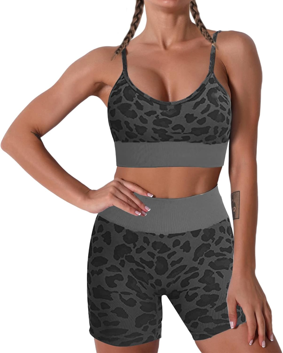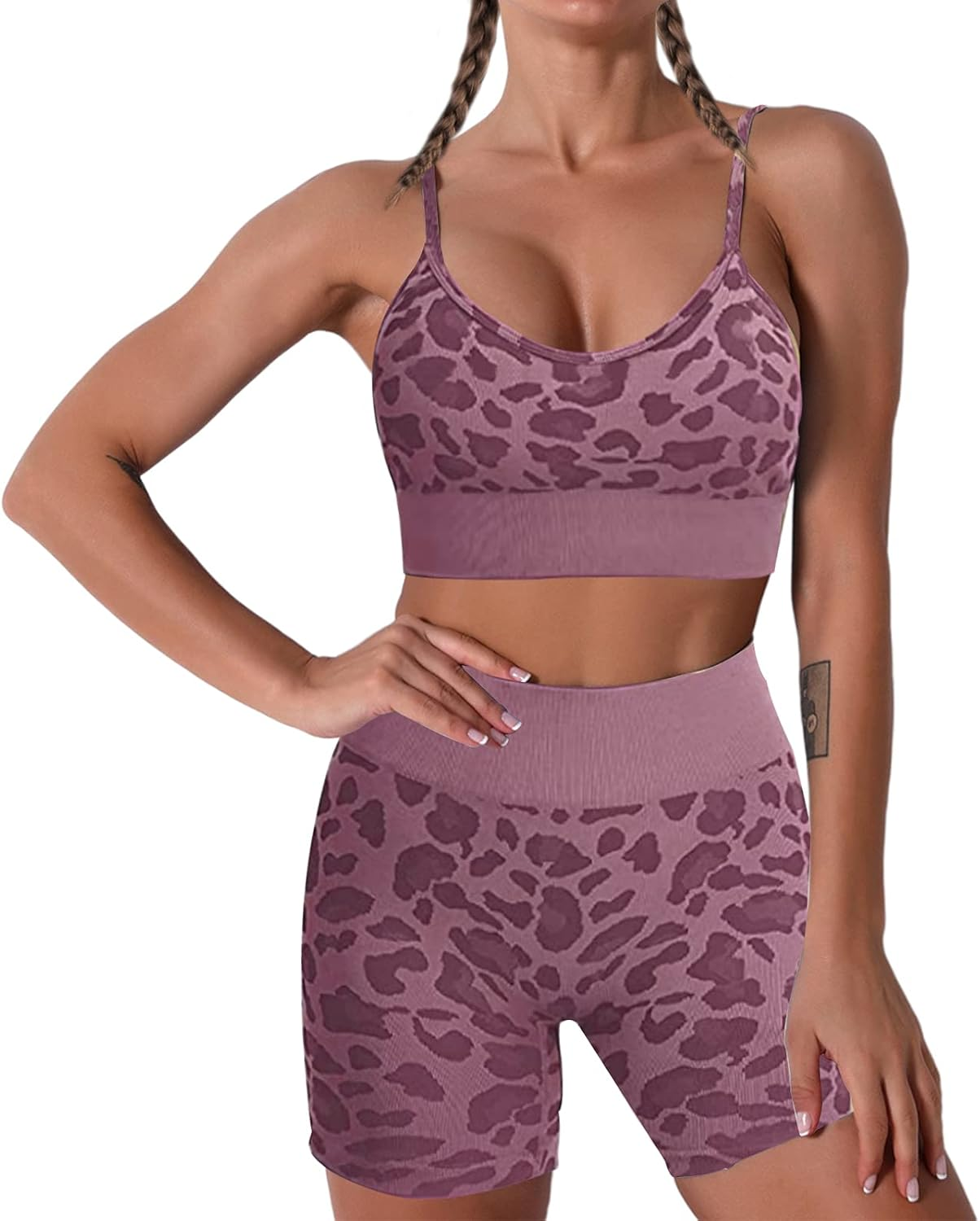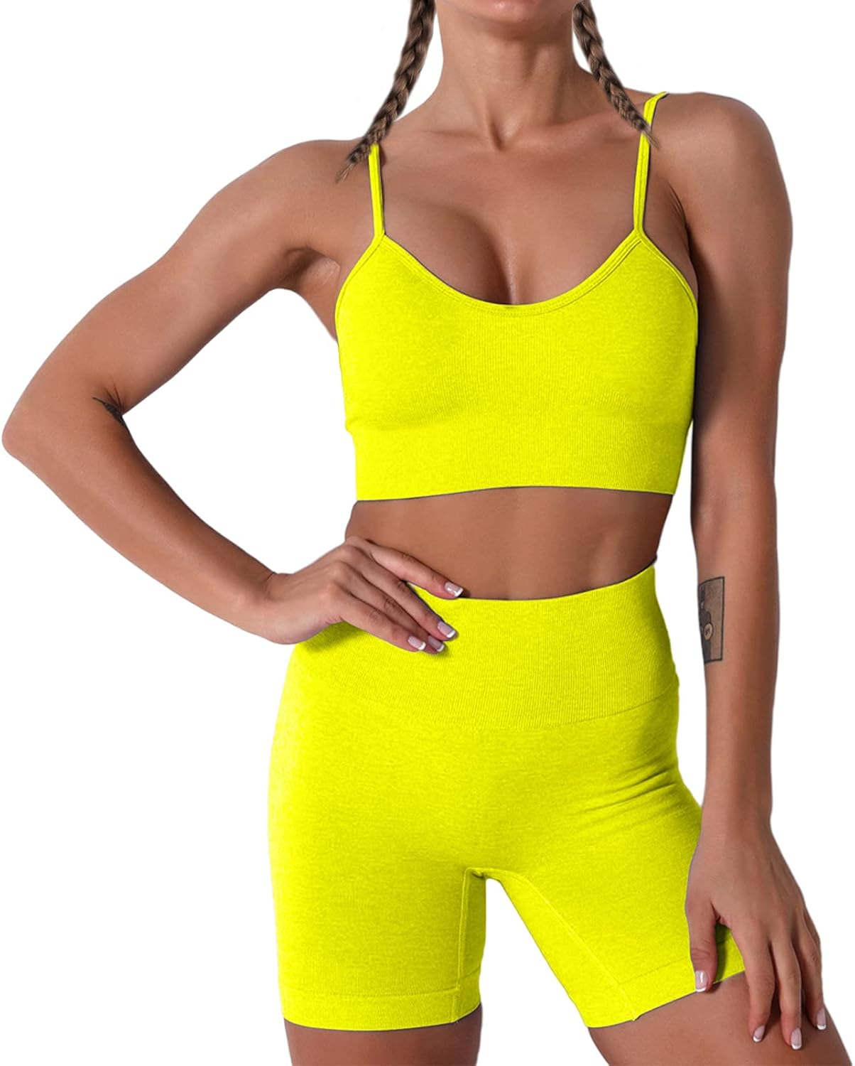 JNINTH Women's Workout Set 2 Piece Outfit Seamless Crop Top Yoga Set