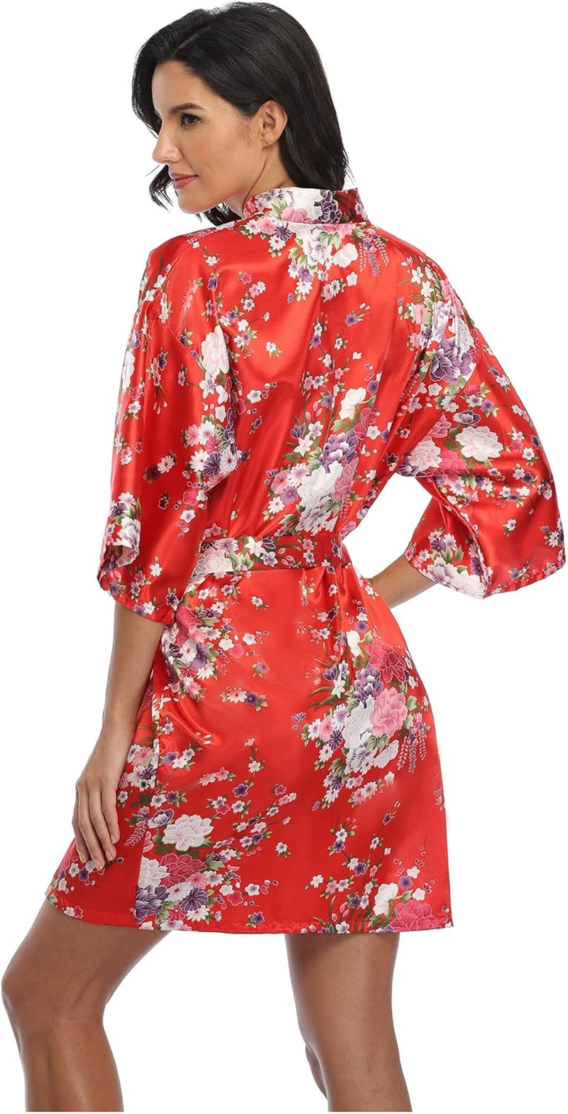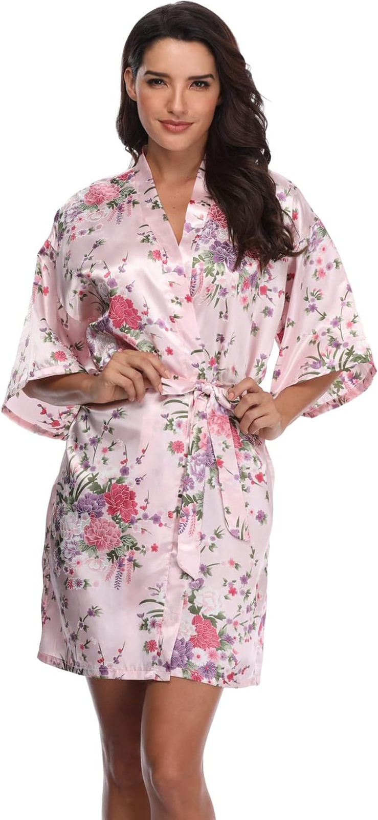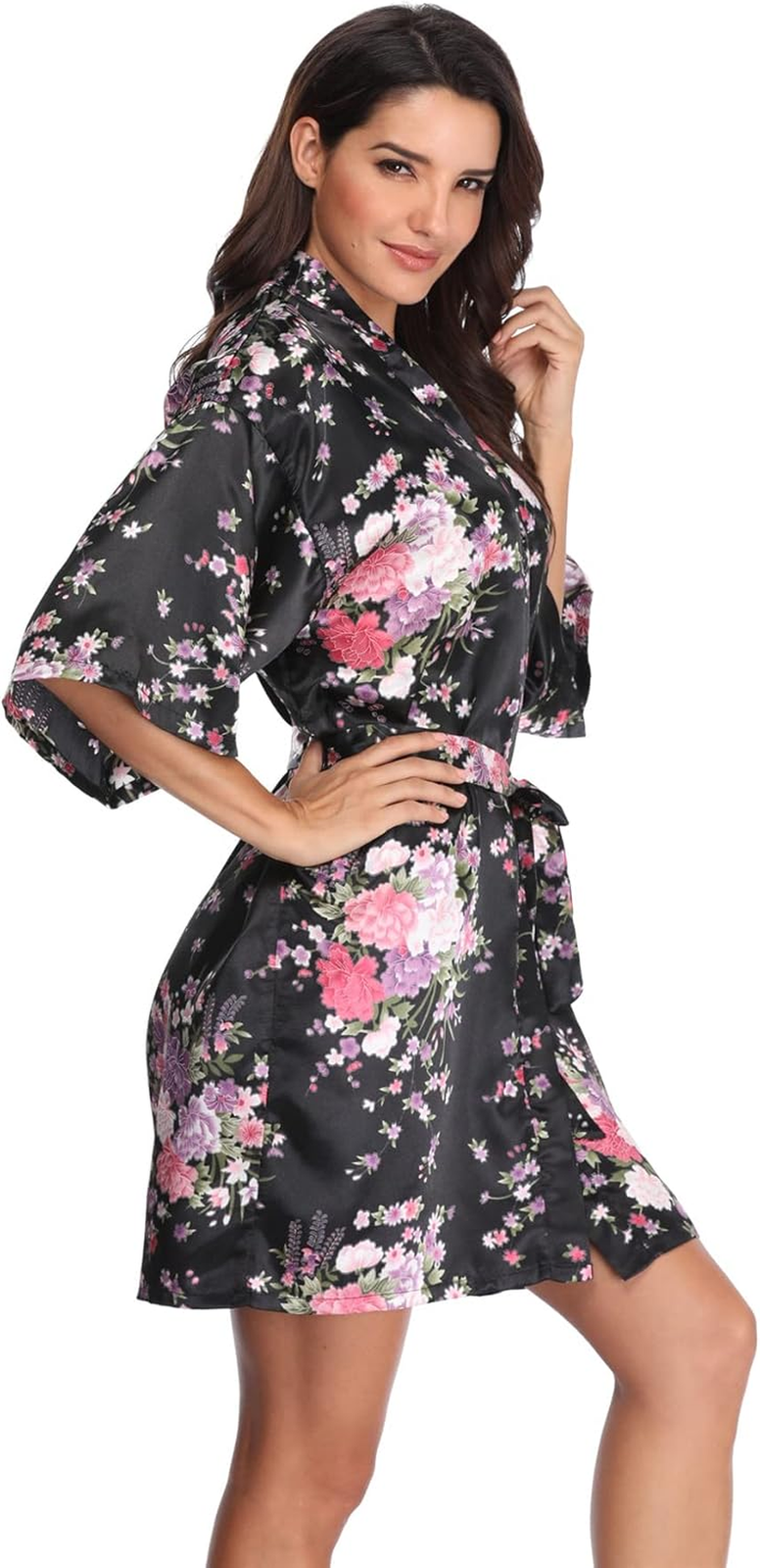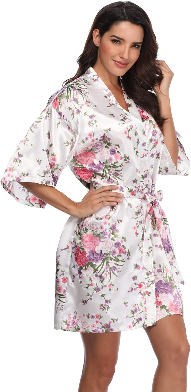 Women'S Floral Short Satin Bridesmaid Robes Silky Bride Robes Getting Ready
