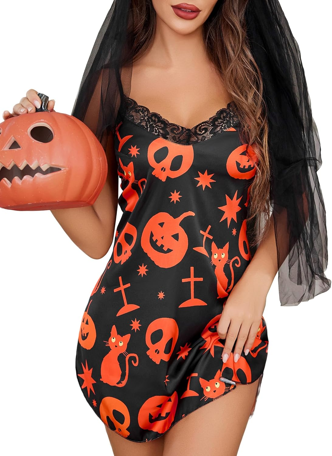 Avidlove Sexy Lingerie For Women Satin Nightgown Lace Babydoll Chemise