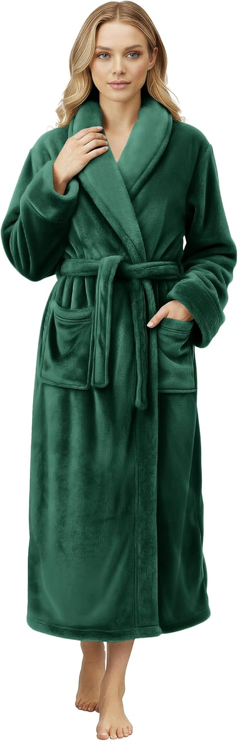 Women’s Plush Fleece Long Bath Robe – Soft Cozy Lounge & Shower Robe with Pockets