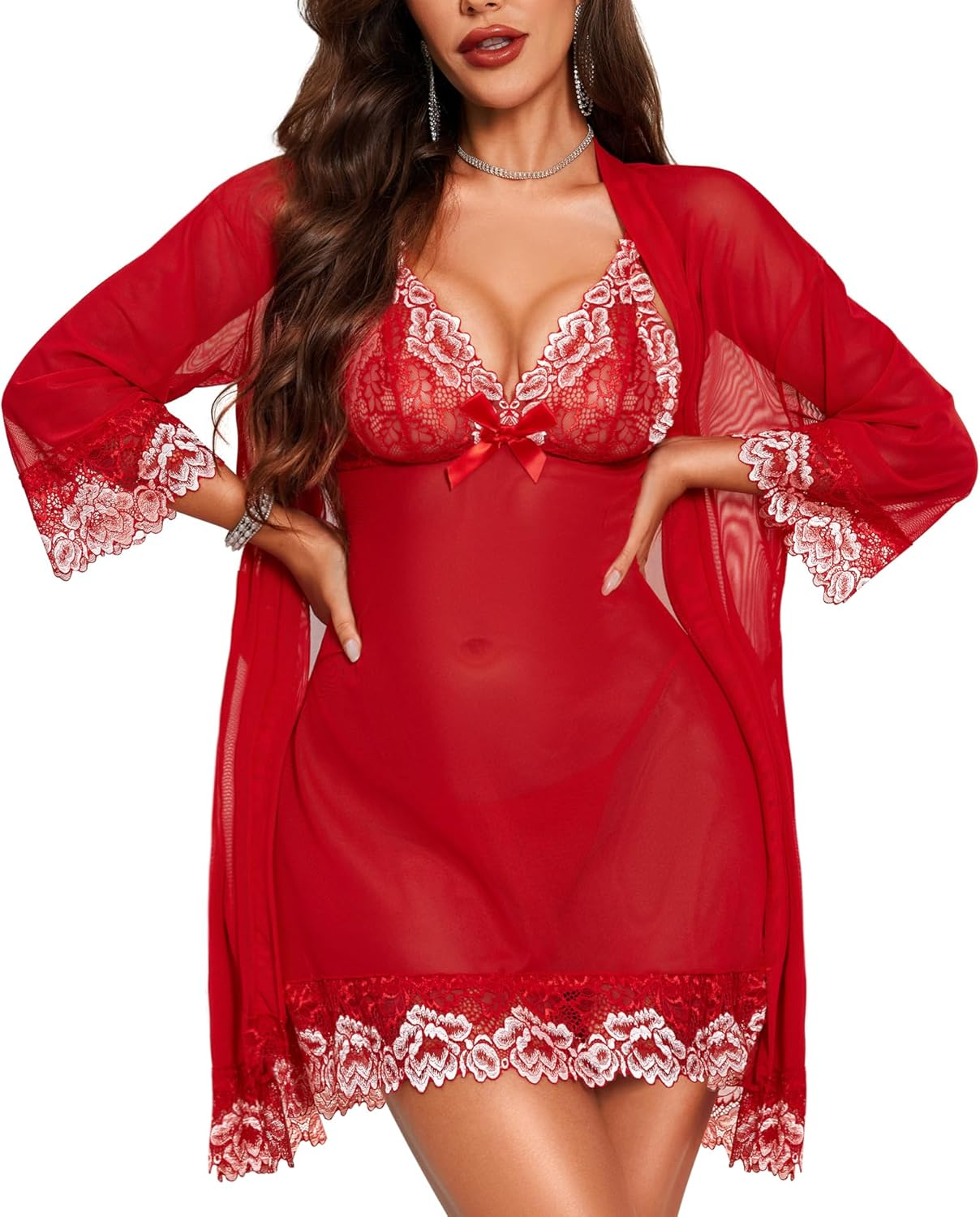 Package Includes: 1x Babydoll Lingerie, 1x Robe, 1x Thong (includes 1 robe tie).