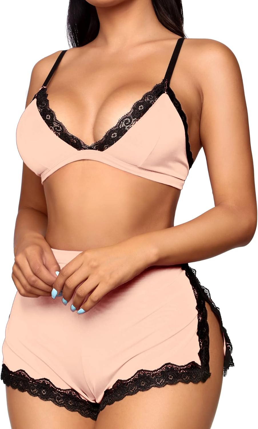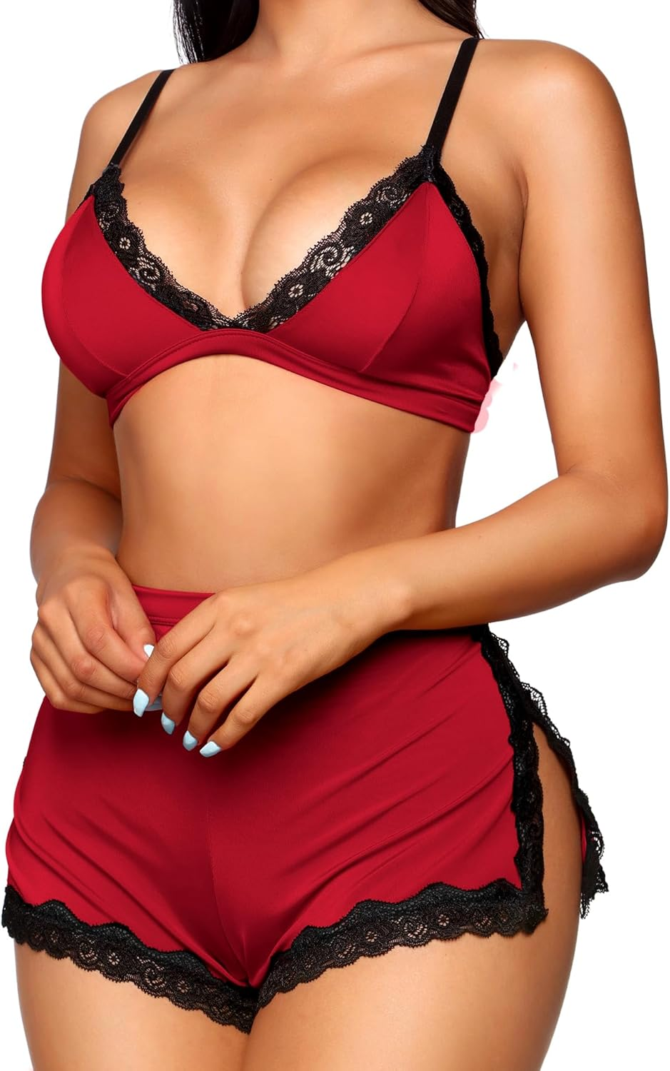 Women's Sexy Lace Trim Pajama Lingerie Set | Soft 2-Pc Shorts Sleepwear pajamas