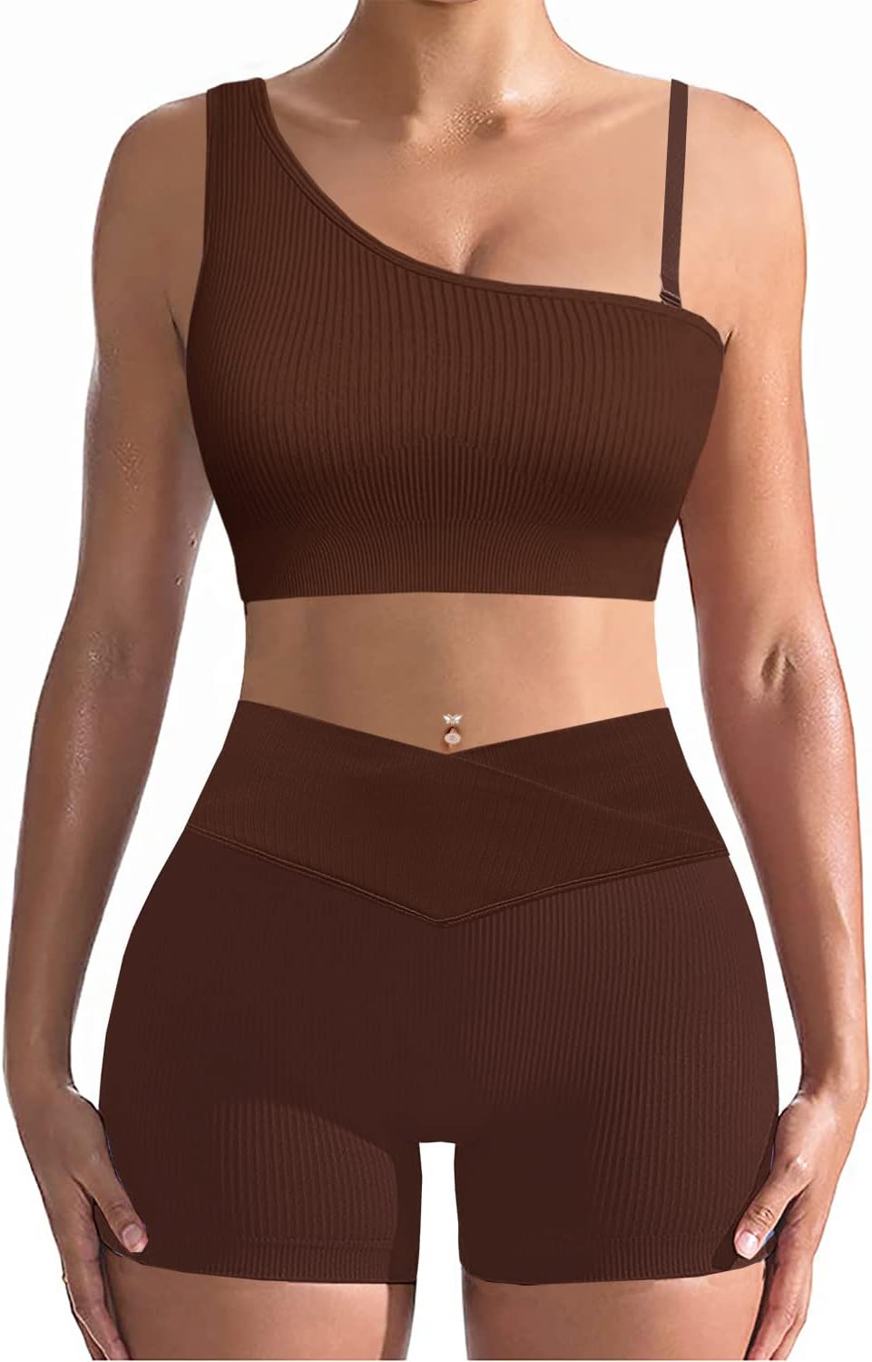 Workout Sets for Women Two Piece Sexy Summer Sports Bra and Crossover Shorts Matching Workout Set
