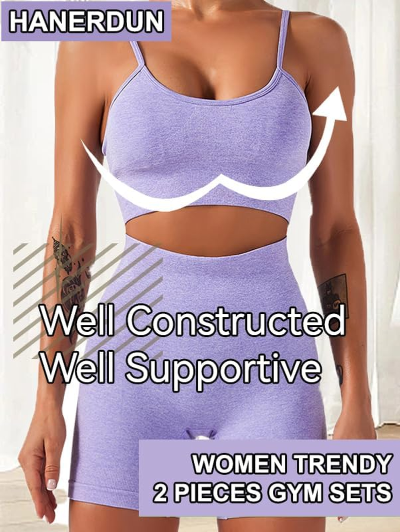 Hanerdun Women/ Girls Sports Bras set are made of high quality materials. Suitable for women and girls, seamless yoga pants squat proof, butt lift, perfect for gym,yoga, exercise, fitness, any type of workout, or daily use.